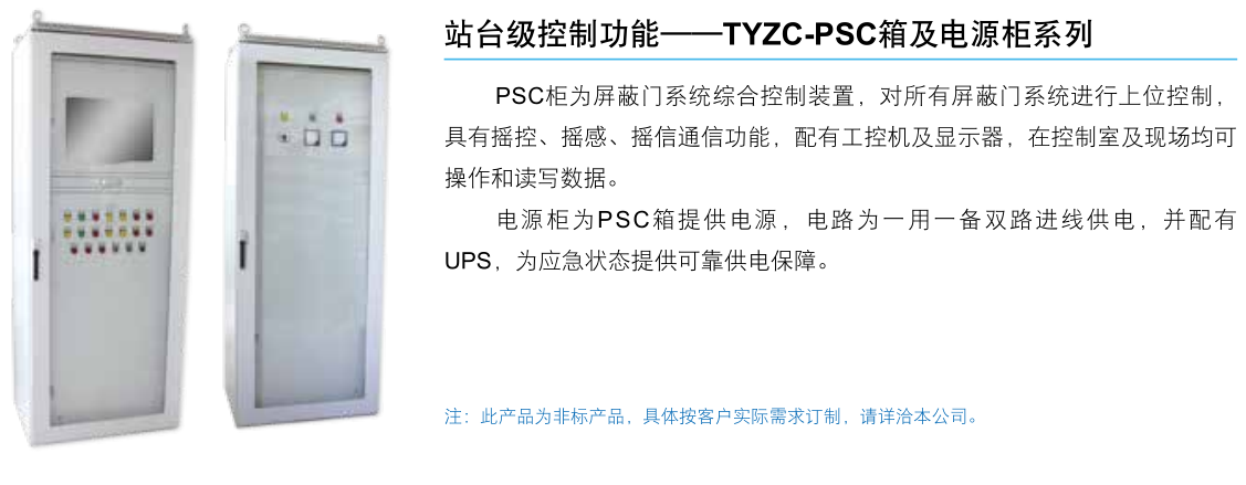 随着城市现代化建设的不断发展,轨道交通得到了高速发展,而轨道交通屏蔽门系统以其安全、节能的特点,得到了愈来愈广泛的应用。上海天逸电器有限公司针对轨道交通屏蔽门系统研发了一系列专用控制箱——包括PSL箱、PEC箱、LCB箱、DCU箱,PSC箱及电源柜。